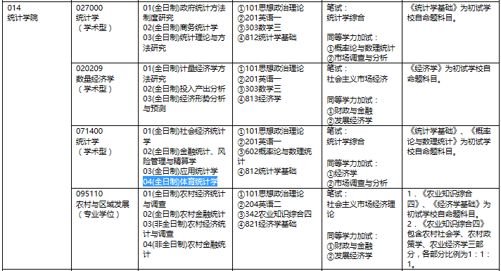 专业目录(体育统计学)